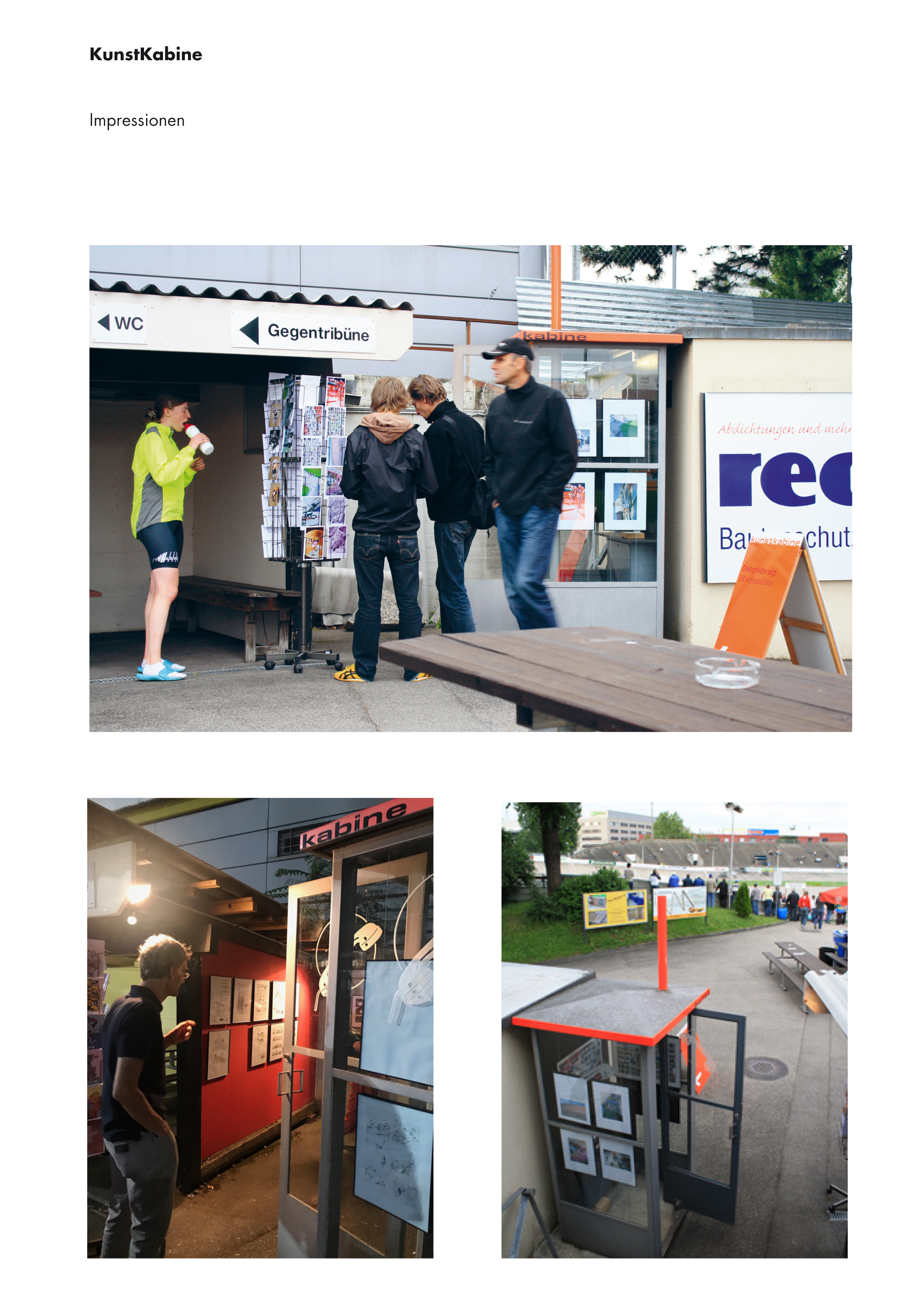 Zwei Kubikmeter Ausstellungsraum: 20 gerahmte Werke haben Platz und höchstens zwei Betrachter aufs Mal. Das ist die Kunstkabine, die "kleinste Galerie der Welt". Seit 2004 betreibe ich in einer alten Telefonkabine diesen unkonventionellen Ausstellungsraum. Das Konzept ist einfach, ich zeige ausschliesslich Comics, Cartoons, Illustrationen oder Fotografien zum Thema Radrennsport. Und sie müssen mir gefallen. Geöffnet ist die Kunstkabine von Mai bis September, wenn die Dienstagabend-Rennen ausgefahren werden. Ich sehe die Kunstkabine als eine Verbindung zwischen den älteren Radsportfans und einer jungen Generation, die das Velo als neues Kultobjekt entdeckt hat. Alle Informationen rund um die Rennbahn: www.rennbahn-oerlikon.ch